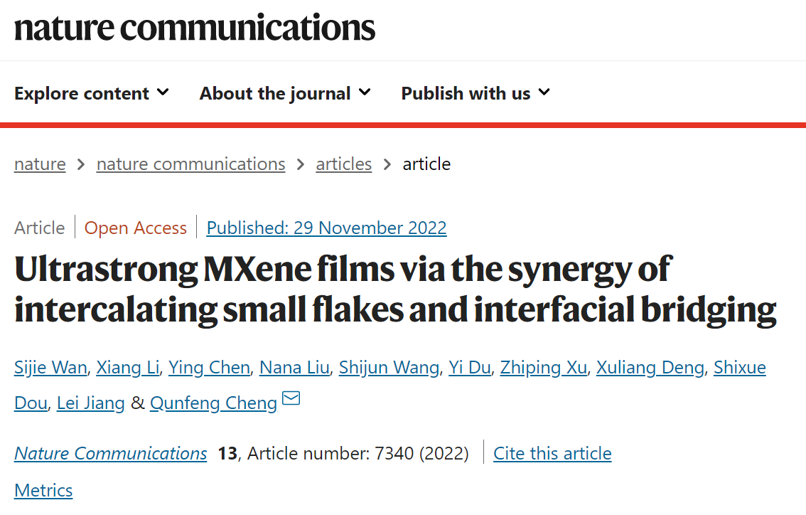 2022年11月29日,《Nature Communications》在线刊登了网投十大信誉澳门网投十大信誉平台程群峰教授课题组的最新研究成果“小片填充和界面交联协同致密化的超强MXene薄膜”(英译:Ultrastrong MXene films via the synergy of intercalating small flakes and interfacial bridging),网投十大信誉澳门网投十大信誉平台万思杰副教授、李响、北大口腔医院第一门诊部陈英博士、网投十大信誉物理学院刘娜娜博士为第一作者,程群峰教授为通讯作者,澳门网投十大信誉平台澳门网投十大信誉平台为第一完成单位。