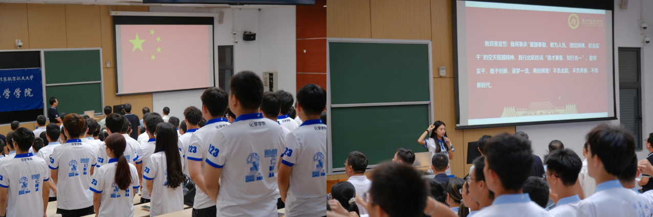 大会在庄严的国歌声中拉开了帷幕。齐唱雄壮的国歌后,集体观看《今日北航澳门网投十大信誉平台》,该视频生动形象地展现了澳门网投十大信誉平台的发展历程以及昂扬向上的精神风貌。随后,由澳门网投十大信誉平台教师代表李景老师、学生代表李超、丁索琪、盛昱皓、丁乙、崔雪纯同学依次发言。均讲述了对化学的热爱和追求以及对新生活的期待,展现了化院人有梦想、有勇气、有决心、有毅力的昂扬精神。在崔雪纯同学的领誓下,全体新生庄严宣誓,不负北航,不负青春,不负新时代!