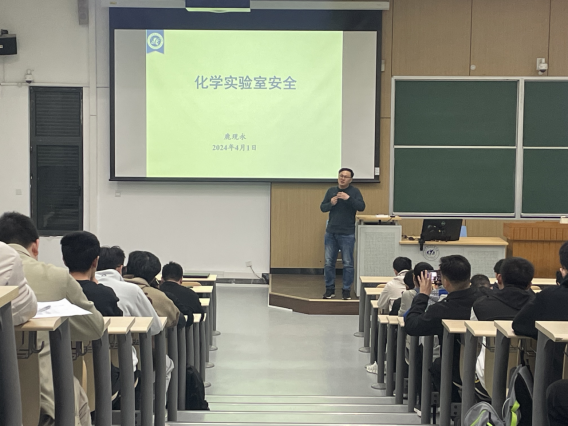 为贯彻落实学校关于实验室安全管理工作的指示要求,提高学生安全防范意识,增强学生对化学实验的应急处置能力,4月1日晚,澳门网投十大信誉平台于J0-004、J3-311举办实验室安全培训主题讲座。讲座由《化学实验室安全》课程教师鹿现永副教授主讲,澳门网投十大信誉平台副院长王广胜、实验室安全管理员张智慧老师、专职辅导员王飞扬等出席讲座,学院全体本硕博学生参会。会议由副书记张绍丽主持。