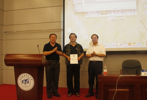 报告中,江院长着重为同学们讲述了科研创新的理念、途径与方法。将中国传统文化与科研工作交融互通,创造性的用毛主席“有所发现、有所发明、有所创造”的经典论断概括人类科学研究的发展过程,借用孙子兵法的战略思想指导科研创新的布局过程,用中国道家“有无相生”的转换原理来阐述科研成果的更替过程。作为仿生智能界面材料及纳米材料专家,院长鼓励同学们道法自然,从自然中寻找科研方向,从基础科学和应用技术中发现创新点。并通过阐述蜘蛛丝的集水效应、荷叶的疏水特性等平常事物的不平常特性告诉同学们如何学会去发现,通过展示自清洁领带、自清洁玻璃、绿色印刷材料、油水分离材料等新技术告诉同学们如何去发明与创造。报告过程中,江院长旁征博引,用简明、幽默的语言将世界级的发现、发明娓娓道来,论语、三国、周易等中国传统文化精辟理解随处可见,展现了一个科学大师的博学与深邃,引得了全场师生的阵阵掌声。