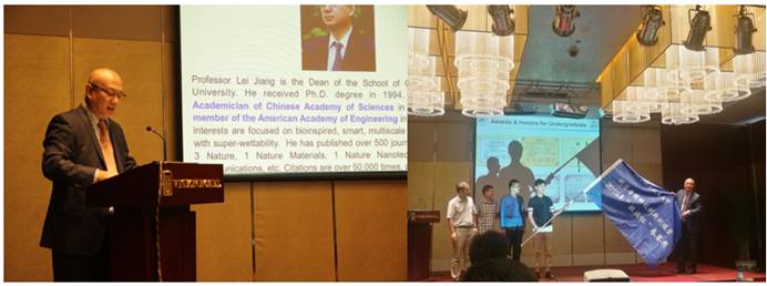 首先,澳门网投十大信誉平台院长江雷教授进行开幕致辞,回顾了北航澳门网投十大信誉平台的创立以及之后的发展与成就。北航党委副书记李军锋为网投十大信誉澳门网投十大信誉平台科技创新训练营2019年“挑战杯”参赛团进行授旗仪式。