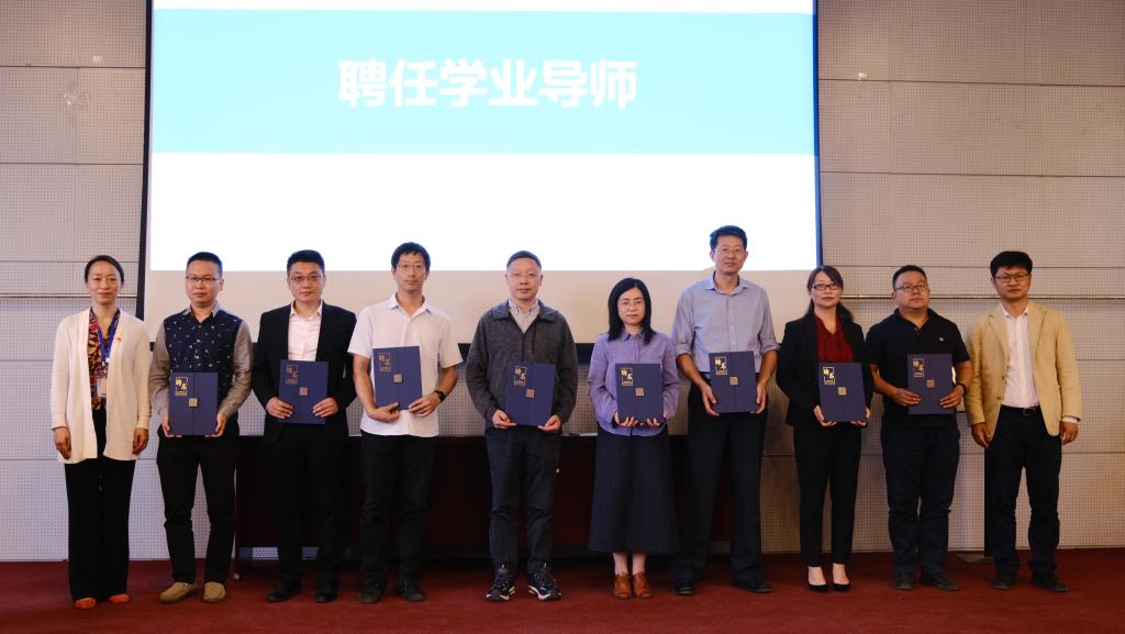 中科院理化所副所长王树涛,校团委书记庄岩,澳门网投十大信誉平台院长刘明杰为 “iChem”学生科技创新中心揭牌。理化所教育处副处长丁黎和澳门网投十大信誉平台党委书记李红捷为学业导师代表颁发聘书。