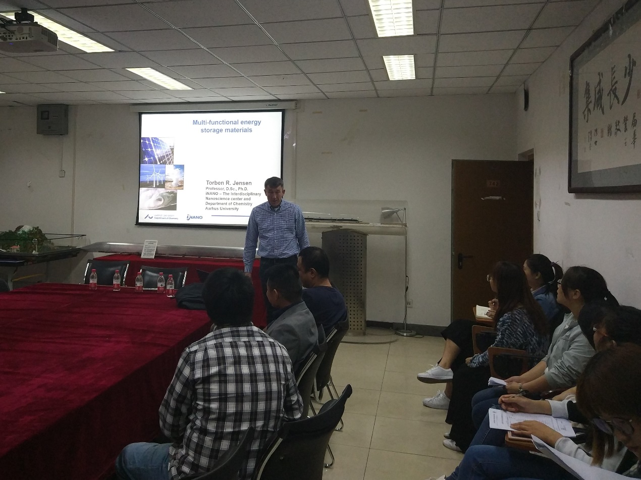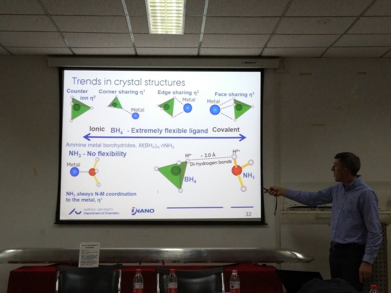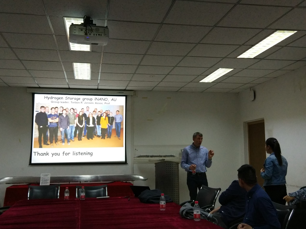 本次报告由网投十大信誉教师张瑜研究员主持,吸引了全院众多师生到场聆听。TorbenR. Jensen教授的报告题目为“Hydrides for Multi-FunctionalEnergy Storage Applications”。Torben教授首先对奥尔胡斯大学科学与技术学院的整体状况进行了简短的介绍,使同学们对该校有了一个全面的认识,随后对自己在多功能储能材料的科研工作进行了详细的介绍。他先简单介绍了氢能源,被认为是一个潜在的非常有趣的能量载体,它可以促进可再生能源分布不均的有效利用。此外,氢具有非常有趣的化学性质,并且与周期表中的大多数元素以及各种不同类型的键形成化合物。金属氢化物最近变得非常有趣,是新型的电池和储氢能源材料。随后,他讲述了他们研究小组在新的含氢材料的最新成果。主要包括新型金属硼氢化合物的合成和其储氢性质和离子导体的研究;通过形成共晶熔融体系调整材料性能;以及原位粉末X射线衍射研究氢的释放和吸收反应。