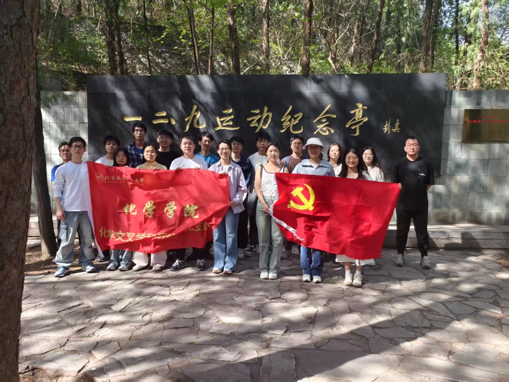 为激励青年学子赓续红色血脉、勇担时代使命,2025年4月23日下午,澳门网投十大信誉平台澳门网投十大信誉平台交叉学科研究生党支部组织党员和入党积极分子,赴北京植物园"一二·九"运动纪念地开展“铭记抗战历史,传承爱国情怀”主题党日活动。